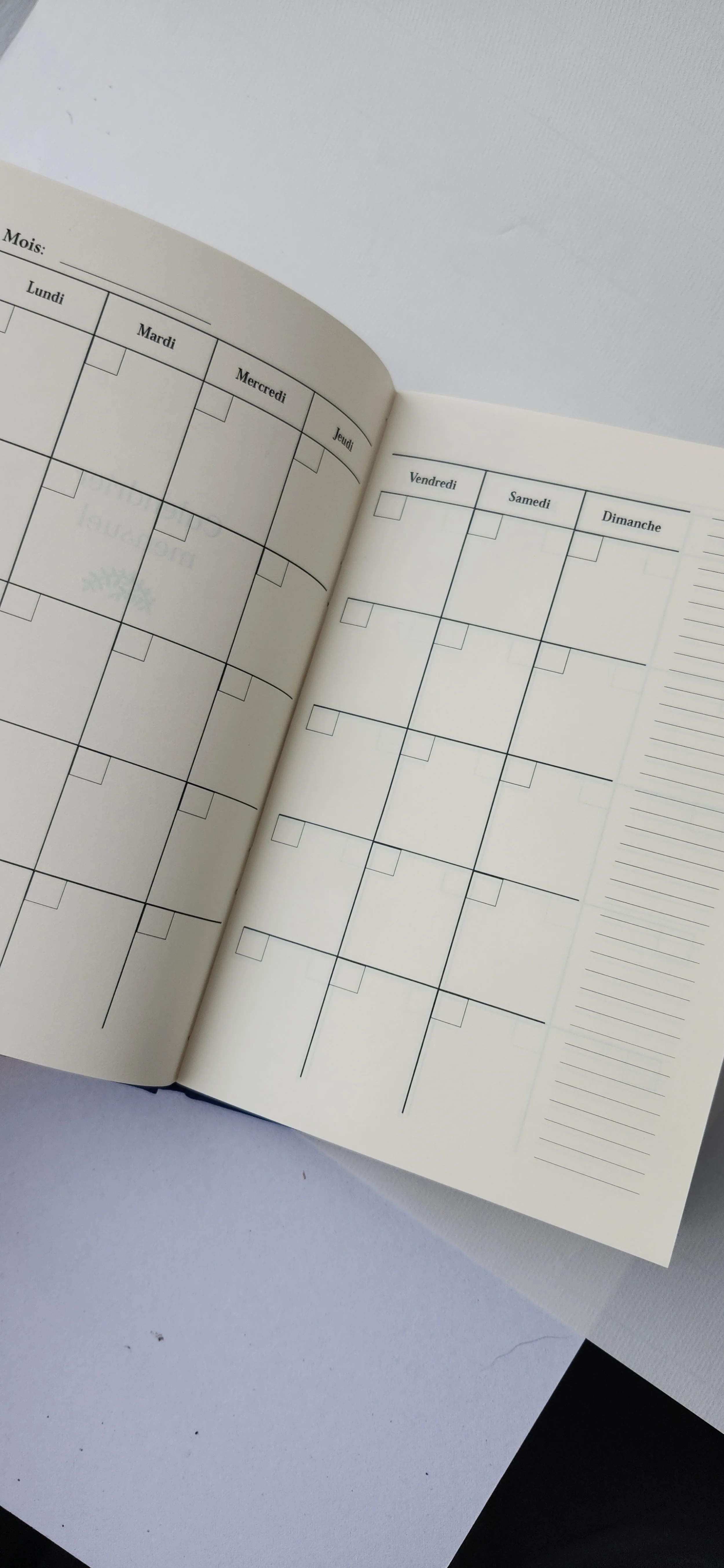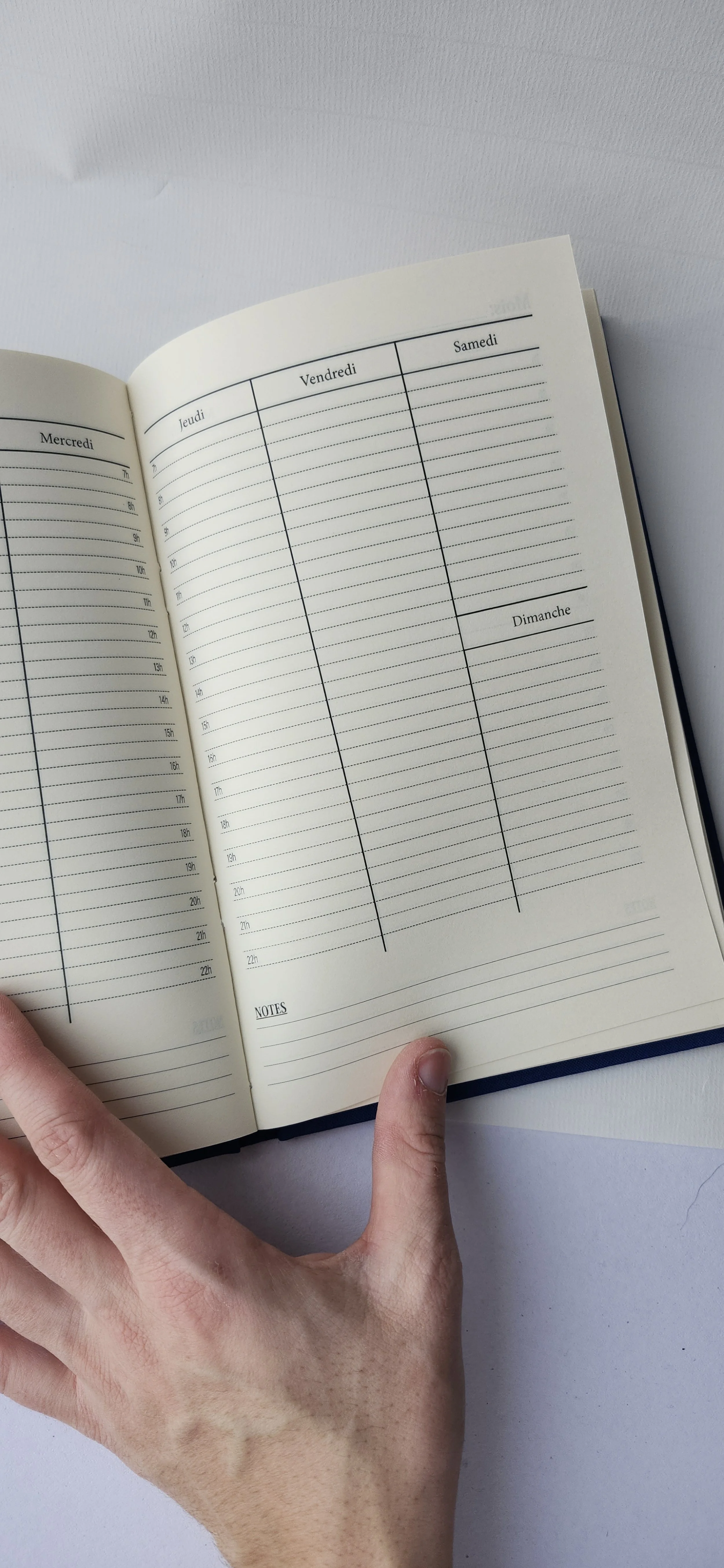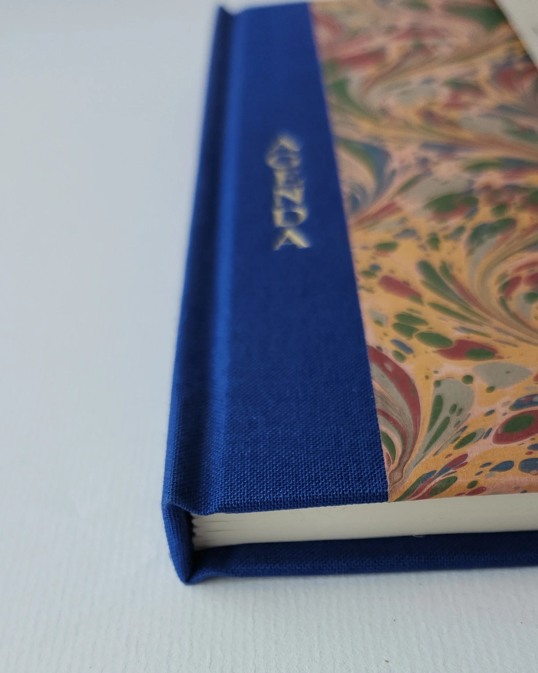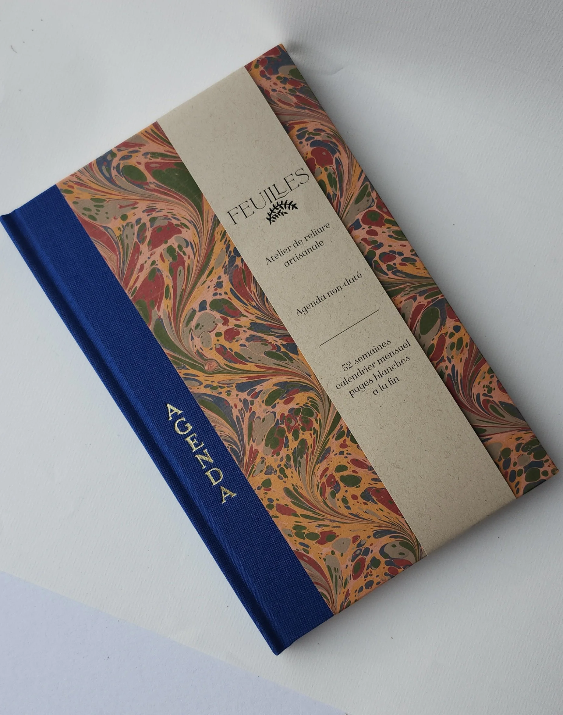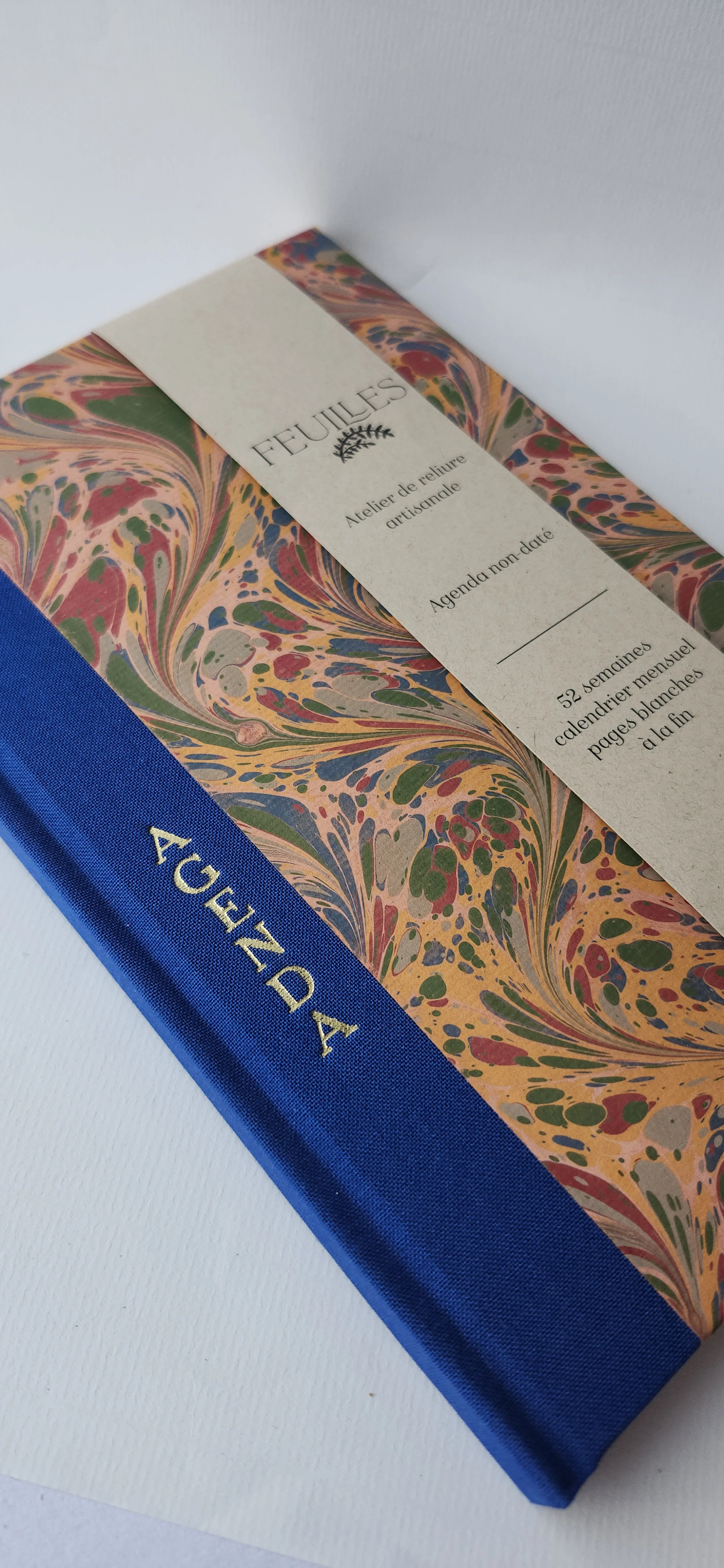 Agenda non-daté entierement fait à la main, avec couverture de papier marbré à l'atelier !
